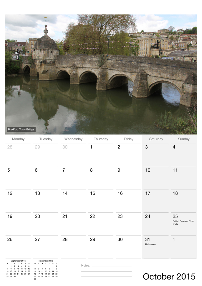 SerenArts Gallery 2015 Calendar of Bradford on Avon with photographs by Serena Pugh