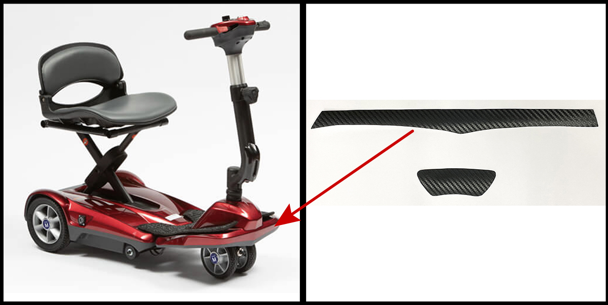 As part of their service, TopSteer Mobility offer to add self adhesive, carbon fibre decals to the front and rear of their scooters, to protect against damage to the paintwork. They tasked us with tracing, scanning and cutting out sets of the decals to fit the areas that take most of the bumps…