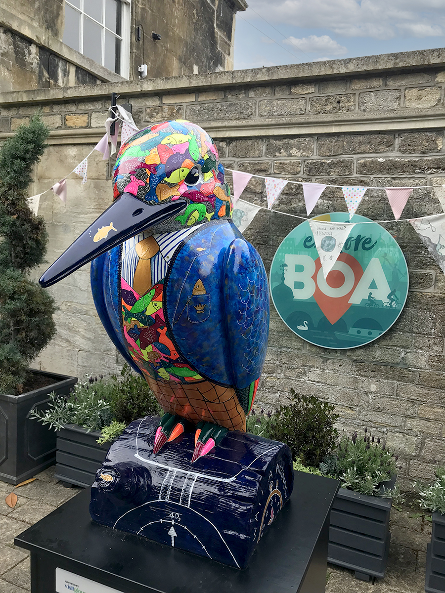 We mentioned a few weeks back that he was on his way… well he’s landed… ‘Wait a Minnow‘ is on his plinth in Westbury Gardens, outside the Tourist Information Centre, to promote two Cotswold walking trails, which Bradford on Avon are now part of. The trails will be available online and via a smartphone App.