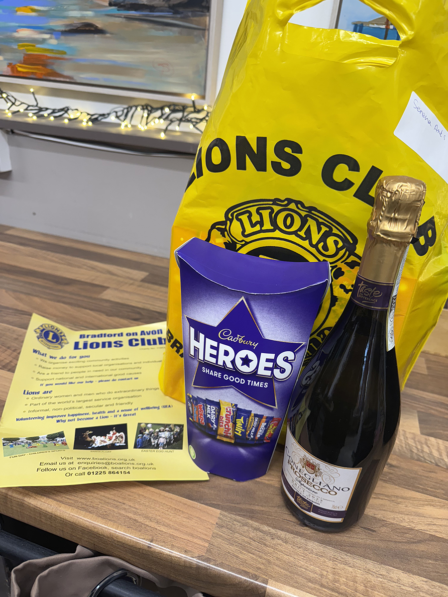 Well, that was a nice surprise… the lovely Hilary came into our gallery this morning with a goodie bag from the Bradford on Avon Lions. They had decided that the places that got hit badly by the recent floods deserved a bit of cheering up!